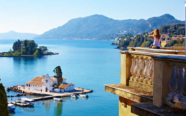 • Enjoy the iconic panoramic view of Mouse Island (Pontikonisi) and Vlacherna Monastery.